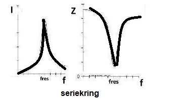 Bij de resonantie frequentie is de impedantie van een seriekring het kleinst,
