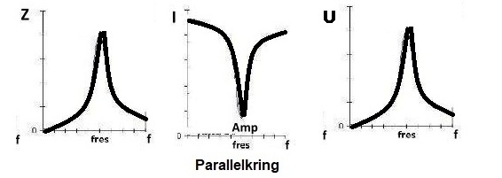 Bij de resonantie frequentie is de impedantie van een parallelkring het hoogst, de spanning over de kring zal dan ook het hoogst zijn en de stroom nagenoeg NUL