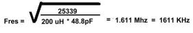1 / 6.207exp-7 = 1611 KHz dit is dus de afgestemde frequentie.