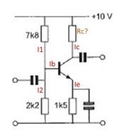 Dus we houden voor de belasting weerstand (Rc) en de transistor samen 8.5 V over.