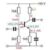 De spanning op de basis is als gevolg van de spanningsdeler 7K8 en 2K2 : 2,2 V