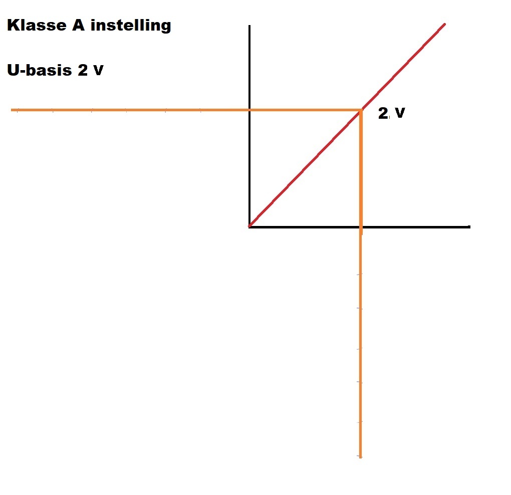 De transistor staat zonder signaal net op het randje.