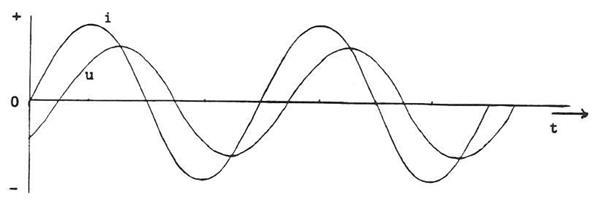 Het verloop van de stroom I en de spanning U is in de grafiek getekend,.