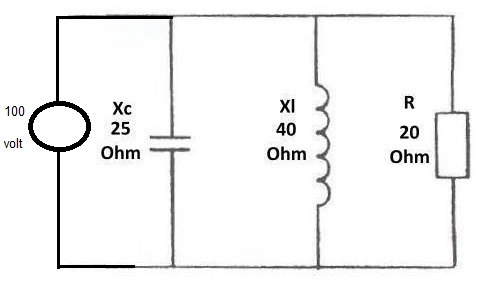 IC = U / XC = 100 / 25 = 4 A