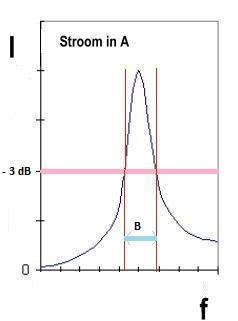 De bandbreedte = de piek-frequentie / Q ,de kwaliteitsfactor