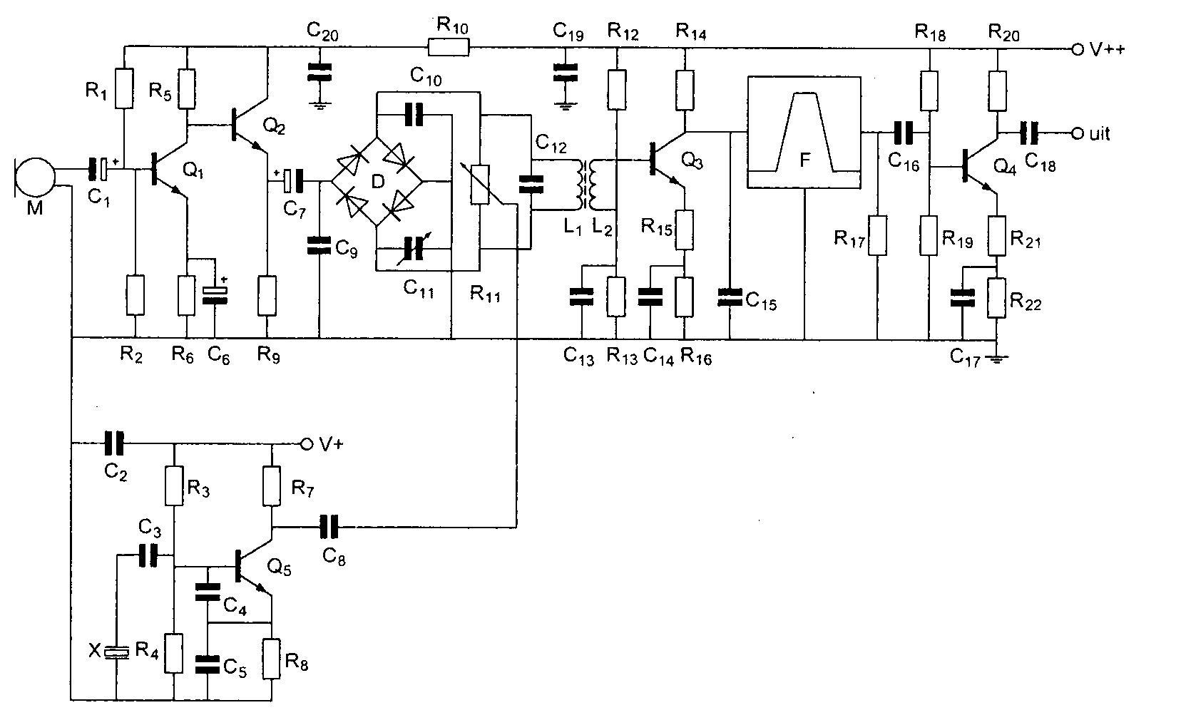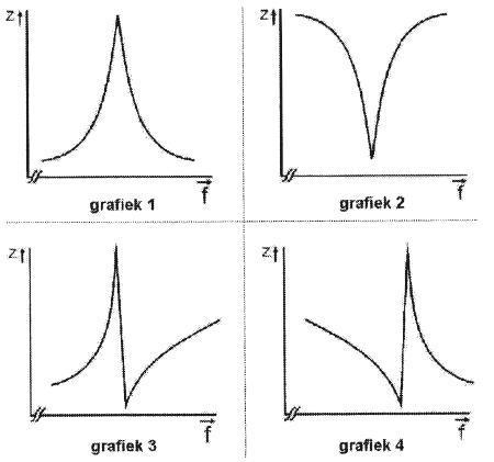 De impedantie van een kwartskristal rond de resonantiefrequentie van de grondtoon is gegeven in:
