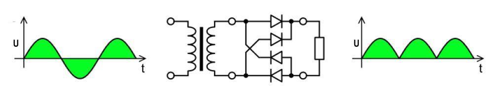 Enkel- en dubbelzijdige gelijkrichting en bruggelijkrichter