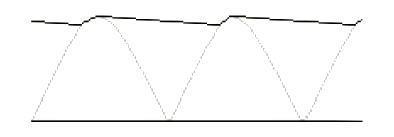 Als we een condensator toevoegen aan de uitgang, dan krijgen we het volgende spanningsverloop: