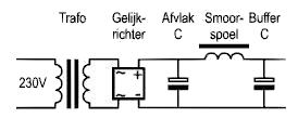 Hoe groter de condensator, hoe vlakker de uitgangspanning.