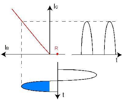 De ruststroom is zó ingesteld dat altijd maar één helft van de uitgangstrap geleidend is. Elke helft verwerkt dus maar één helft van de signaal cyclus.