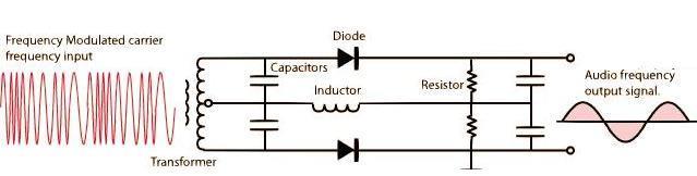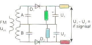 Een FM-discriminator is een diode detector in dubbele uitvoering.