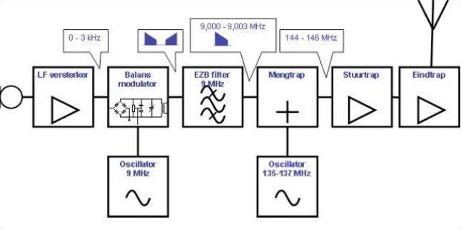 In een EZB-zender wordt gebruik gemaakt van een kristalfilter om één van de zijbanden uit te filteren.