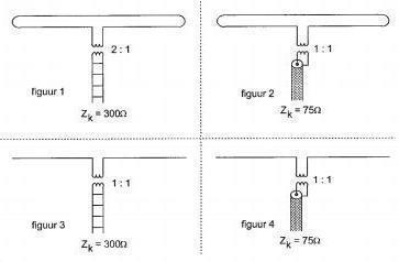 In welke figuur is de aanpassing bij de halve golf antenne juist?