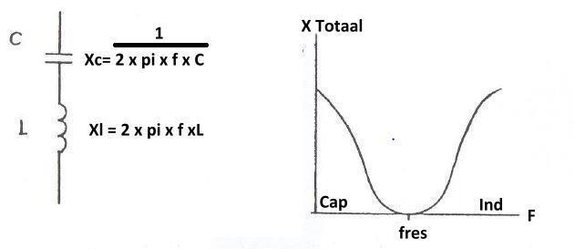 In resonantie is de capacitieve reactantie XC van de kring gelijk aan de inductieve XL.