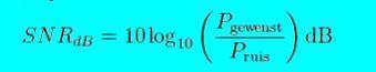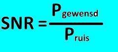 De SNR geeft het vermogen (sterkte) van het gewenste signaal in verhouding tot het vermogen van de aanwezige ruis.