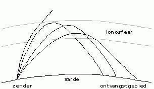Propagatie van ruimtegolven treedt met name op in de frequentieband tussen 1,5 en 30MHz.