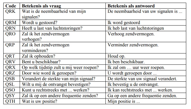 Voor radioverkeer is de groep QRA tot QTZ vastgesteld
